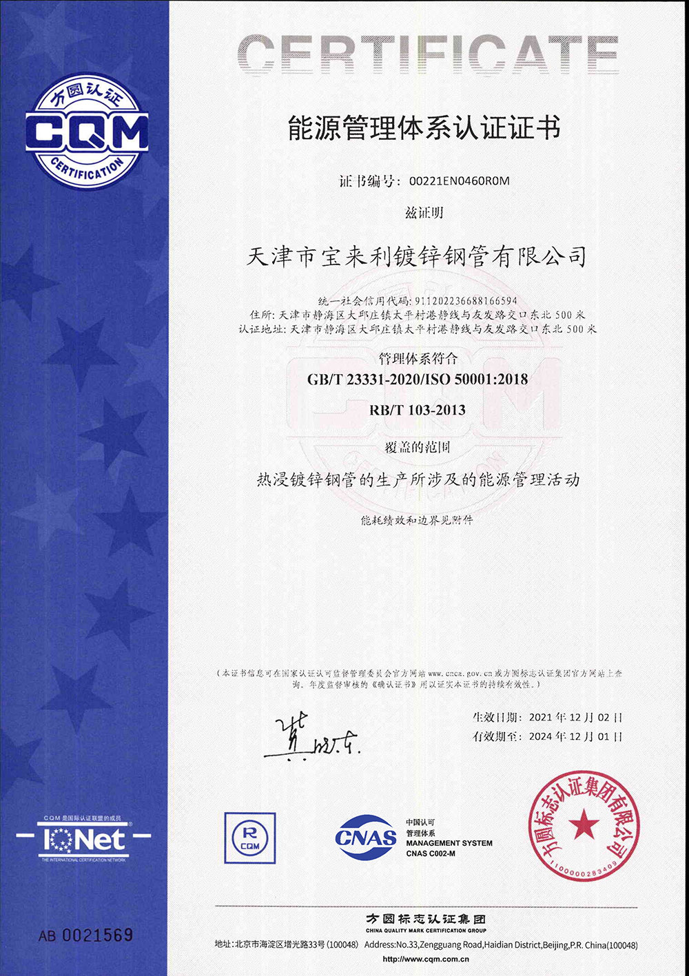 天津市寶來利鍍鋅鋼管有限公司